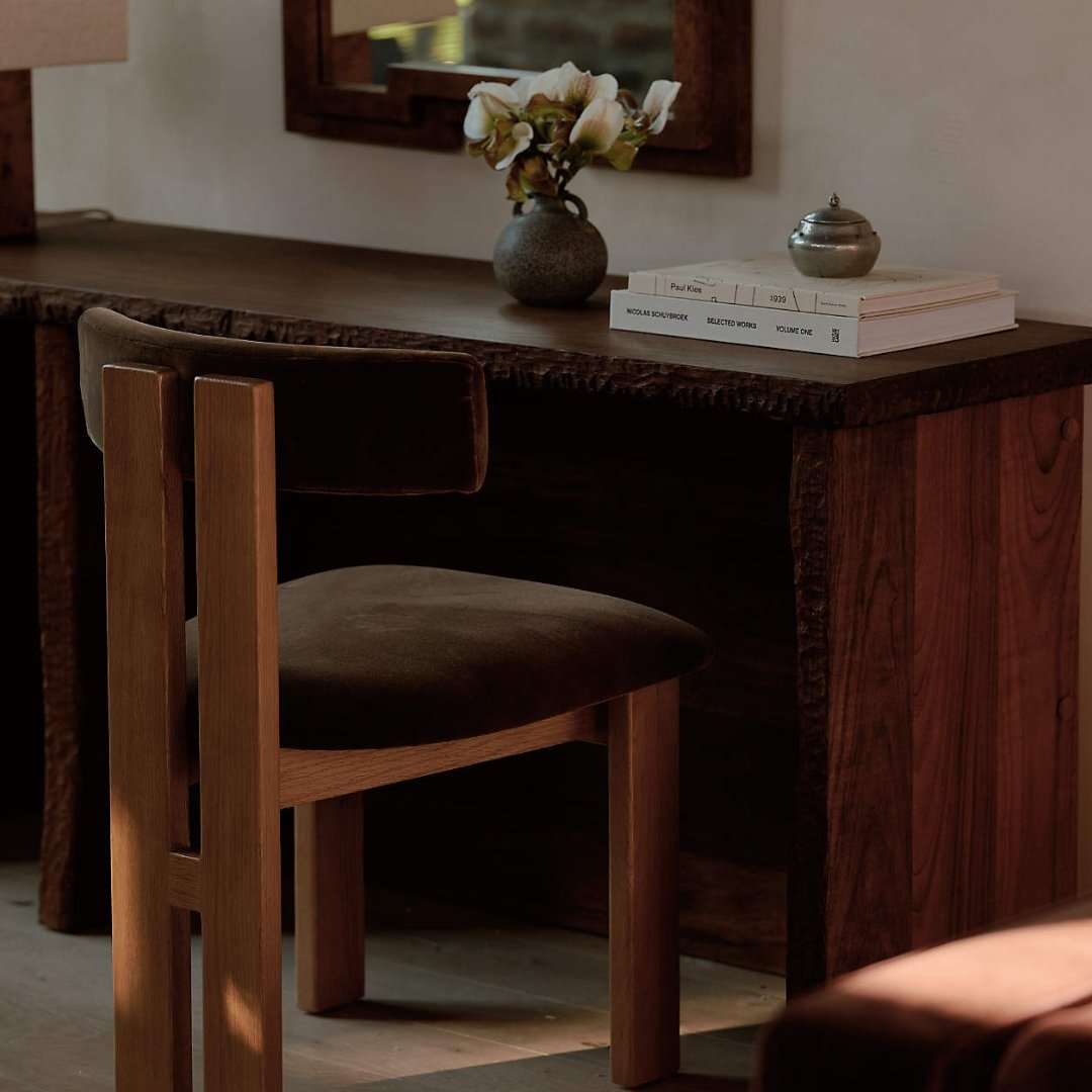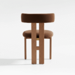 Designed to complement contemporary and mid-century interiors, this chair combines sleek craftsmanship with ergonomic comfort. The rich walnut wood finish adds warmth and sophistication to any dining room, while the plush padded seat and cylindrical backrest provide exceptional support for long meals or gatherings.